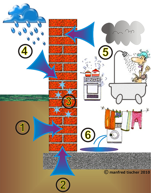 Es gibt folgende Ursachen für Feuchtigkeitsschäden an Gebäuden: